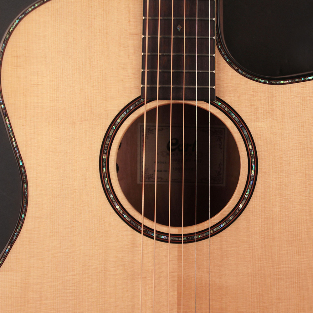 Cort akusztikus gitár elektronikával, domború mirtuszfa hátlap, bevel kartámasszal, natúr